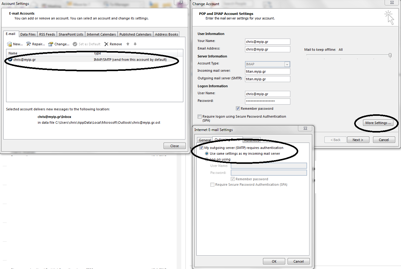 Σε αυτή τη περίπτωση απλά πρέπει να πάτε στις ρυθμίσεις του λογαριασμού και να επιλέξετε την επιλογή "SMTP Requires Authentication".