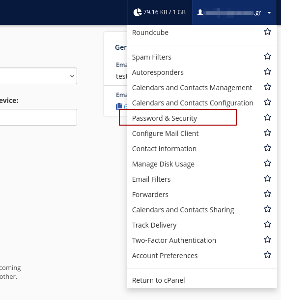 Αφού συνδεθούμε, στο πάνω δεξί μέρος του μενού επιλέγουμε «Password & Security».