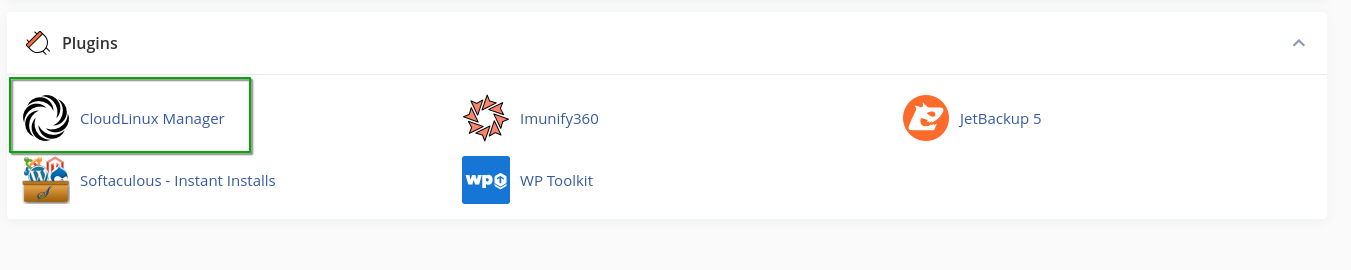Στην κατηγορία Plugins επιλέξετε το CloudLinux Manager