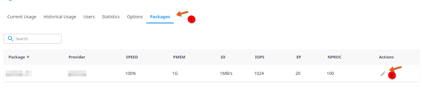 Στο tab Packages βρείτε το πακέτο που θέλετε να ορίσετε τα όρια του και πατήστε Edit.